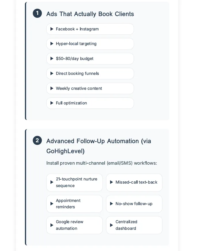 Automation & Speed-to-Lead: Added instant text follow-ups, email nurture flows, and AI-assisted booking responses.